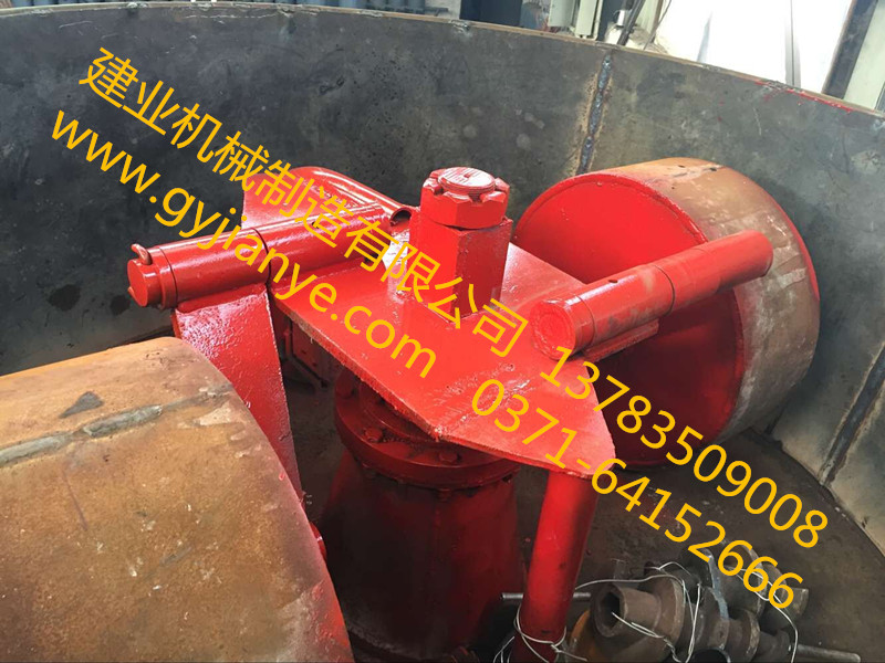 2、碾盤(pán)的更換 先將磙輪、連接杠拆開(kāi)并吊出,再把舊的碾盤(pán)吊出,將水盆底部的緩沖砂層重新鋪平,將新的碾盤(pán)吊放水盆底部,校正位置,最后將碾磙、連接杠吊裝并連接即可。